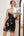 Robe de retour serrée à paillettes noires avec plumes
