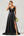 Sirène noire spaghetti bretelles ruffed bow back Satin longue robe de demoiselle d’honneur