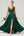 Vert foncé Sirène spaghetti bretelles Satin noeud volant longue robe de demoiselle d’honneur