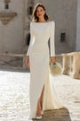 Robe de mariée ivoire simple moulante à col en V profond avec fente