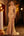 Robe de soirée sirène longue dorée métallisée à dos noué avec fente