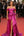 Robe de bal longue à plusieurs niveaux fuchsia scintillante avec appliques