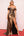 Robe de gala longue sirène métallisée à épaules dénudées café avec fente