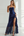 Robe De Soirée longue sirène à bretelles spaghetti bleu marine scintillante avec fente