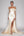 Robe de bal en satin métallisé à bretelles spaghetti fourreau dorées