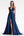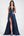 Robe longue de bal en satin bleu marine avec fente