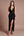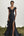 Robe de bal longue noire en satin à col carré trapèze