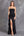 Robe longue formelle à volants sans bretelles noire avec fente