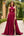 Robe de bal corset sirène bordeaux à col en V en velours