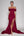 Robe de bal en satin bordeaux découpé une ligne
