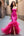 Robe longue de bal à bretelles spaghetti sirène fuchsia