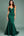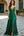 Robe de bal longue sirène à bretelles spaghetti perlées vert foncé