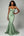 Robe longue de bal sirène à paillettes et épaules dénudées vert scintillant