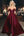 Robe longue de bal trapèze en tulle bordeaux à épaules dénudées
