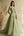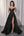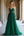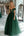 Robe de soirée longue froncée en tulle trapèze vert à bretelles spaghetti avec broderie