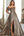 Robe longue de bal trapèze à col licou métallisé doré scintillant