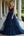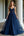 Robe longue de bal à bretelles spaghetti bleu marine avec volants