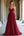 Princesse rouge à col en V profond Tulle Robe de Bal Longue avec Perles