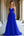 Robe longue de bal plissée à bretelles spaghetti fourreau bleu