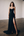 Robe de bal longue noire en satin à col carré trapèze