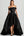 Robe de bal noire en mousseline de soie à plusieurs niveaux avec fente