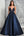 Une ligne marine sans bretelles à plusieurs niveaux et robe longue de bal