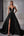 Robe de bal longue en satin noir trapèze scintillante à col en V avec paillettes