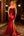Sirène rouge spaghetti bretelles Corset plissé longue Robe de soirée avec fente
