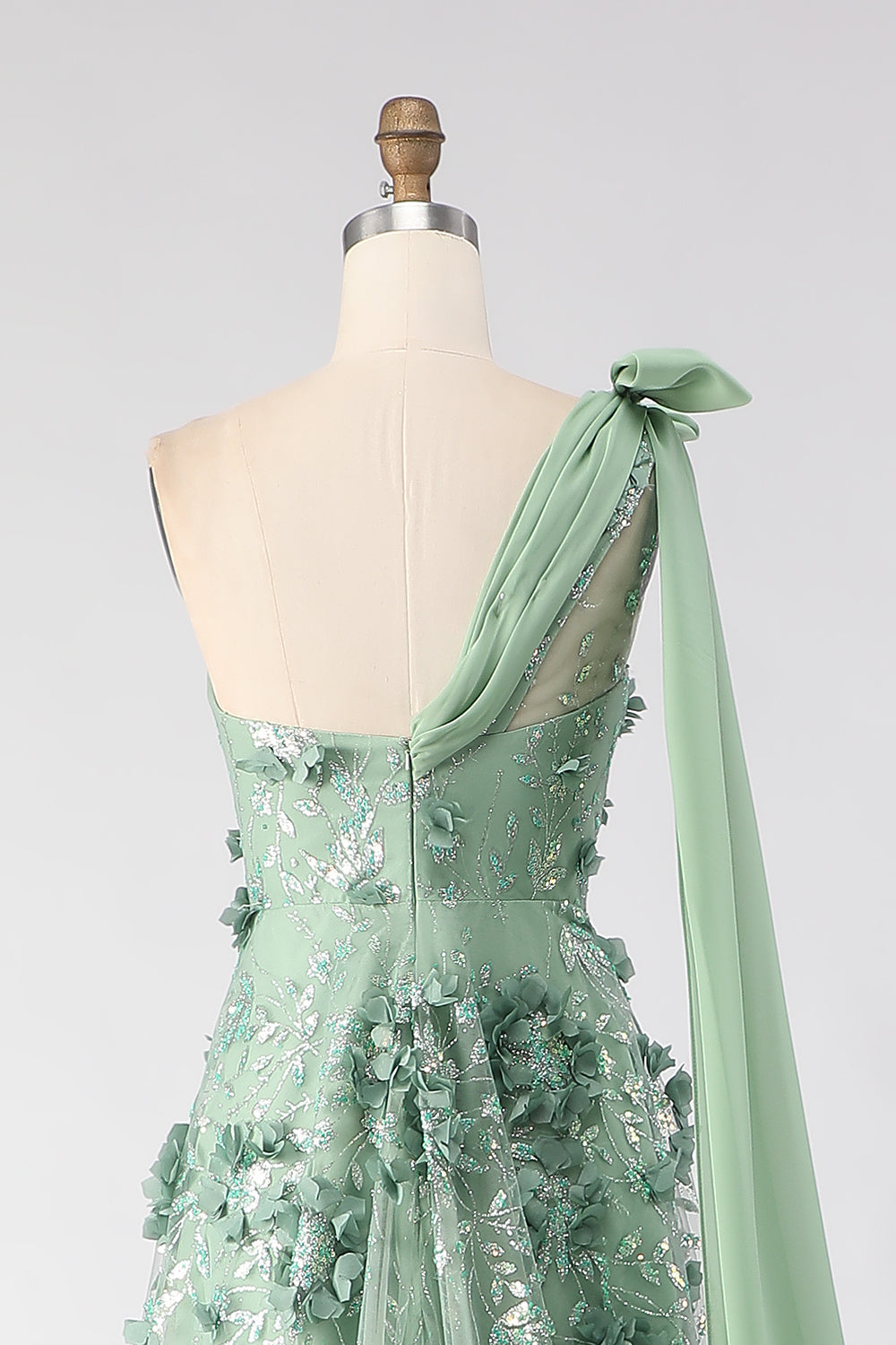 Eucalyptus Sequins ligne A à une épaule Fleurs 3D Robe de bal longue avec fente