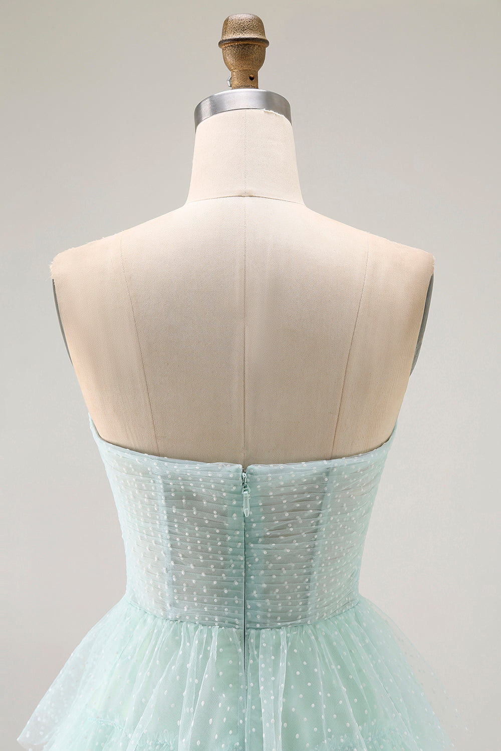 Noir Une ligne sans bretelles à volants à pois Robe longue de bal avec fente