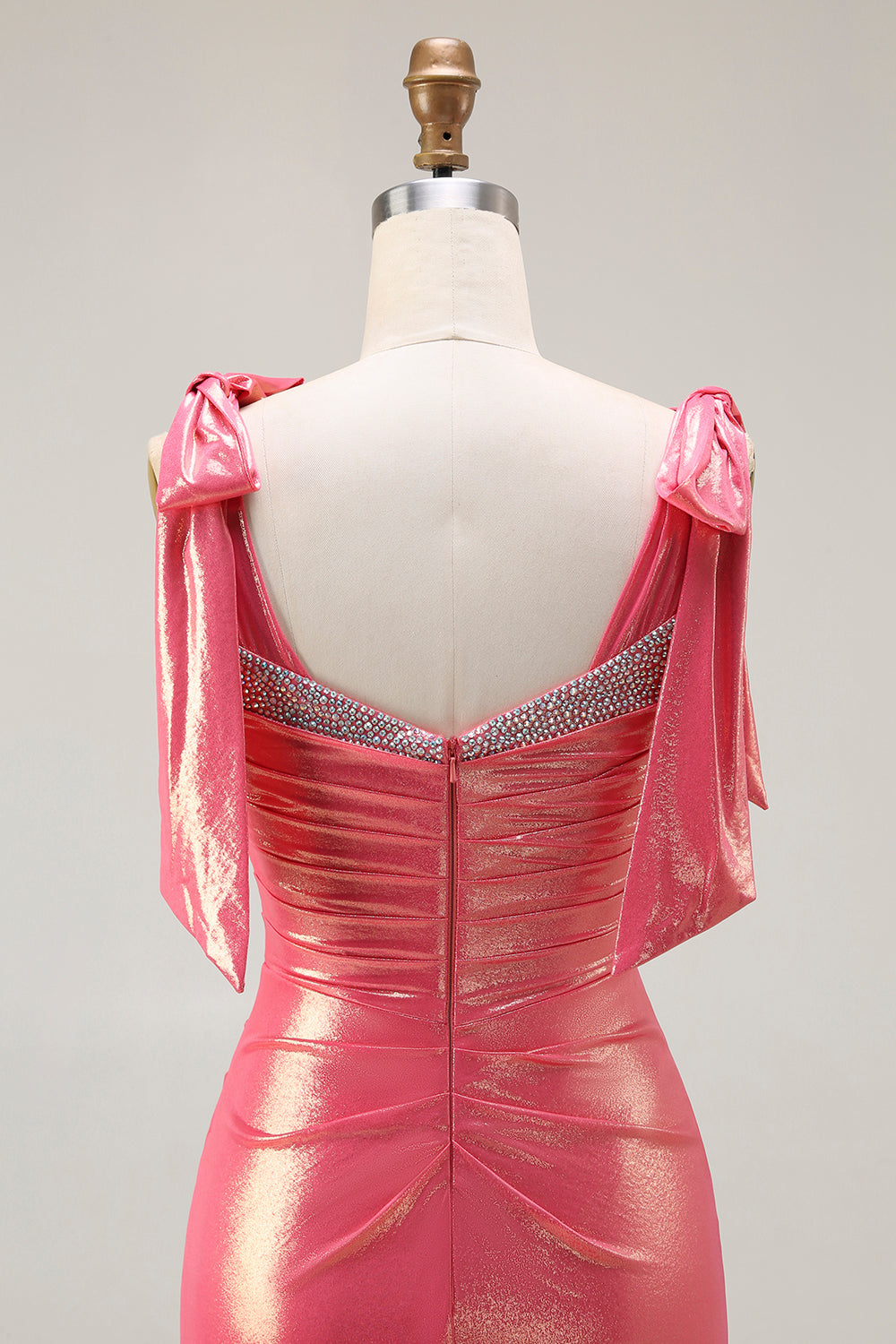 Robe De Soirée longue froncée perlée corail métallique Sirène avec fente