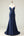 Robe de soirée longue trapèze bleu métallisé à corset ornée de perles