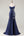 Robe de soirée longue bleu marine à corset brodé de perles et fente