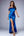 Robe longue formelle en satin bleu royal à épaules dénudées avec manches amovibles