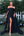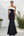 Sirène noire à manches longues à manches longues froncée longue avec fente