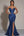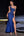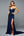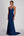 Robe formelle en satin bleu marine à col en V profond avec fente