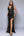 Robe de bal sirène dos nu à paillettes noires scintillantes avec fente