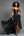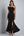 Robe formelle en satin contrasté noir mat à épaules dénudées