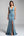 Robe formelle à fourreau bleu poussiéreux à col en V avec fente