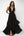 Noir Une ligne longue spaghetti bretelles robe formelle avec volants