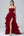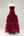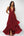 Rouge profond col en V froncé Volants Une robe formelle trapèze