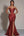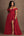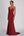 Fourreau rouge à manches courtes satin col V profond Robe longue formelle