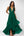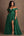 Robe formelle sans bretelles en velours vert foncé avec fente