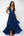 Robe formelle longue grande taille en mousseline de soie bleu marine à col en V