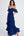 Bleu royal trapèze col en V manches longues plissé Robe longue formelle