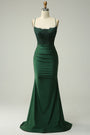 Robe de soirée longue Corset à bretelles spaghetti sirène vert foncé
