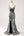 Robe de soirée longue sirène en satin perlé gris avec fente