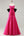 Robe de soirée longue en satin fuchsia coupe bustier à décolleté cabriolet avec grand nœud