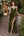 Robe longue formelle en velours froncé à col en V olive avec fente