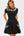 V NECK Black Floral imprimé 1950s Robe avec ceinture